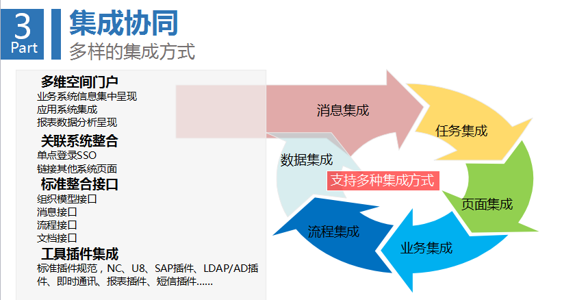 第二環(huán),是業(yè)務(wù)之間的協(xié)同,工作和業(yè)務(wù)又形成相互的融合。根據(jù)企業(yè)業(yè)務(wù)場(chǎng)景,為企業(yè)量身定制,覆蓋各個(gè)層面與領(lǐng)域。