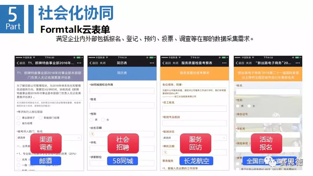 第五環(huán)是社會(huì)化協(xié)同。任何企業(yè)都要知道,客戶(hù)的第一反應(yīng)是什么,知道下游供應(yīng)商的隨動(dòng)是什么?與其他社交軟件打通,實(shí)現(xiàn)移動(dòng)辦公。